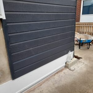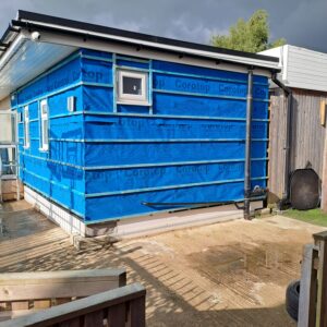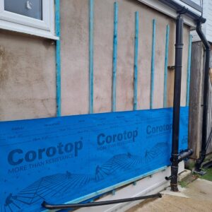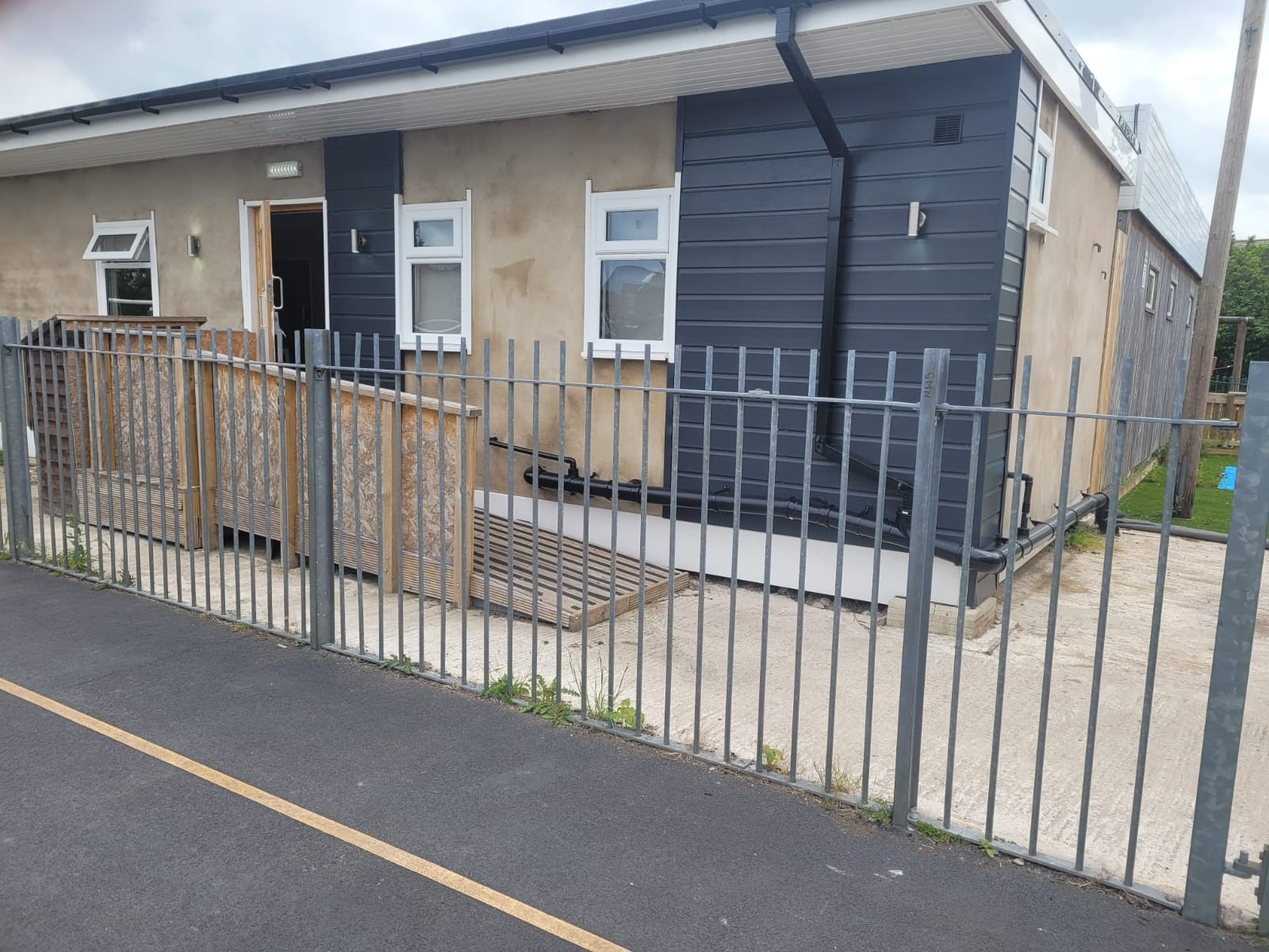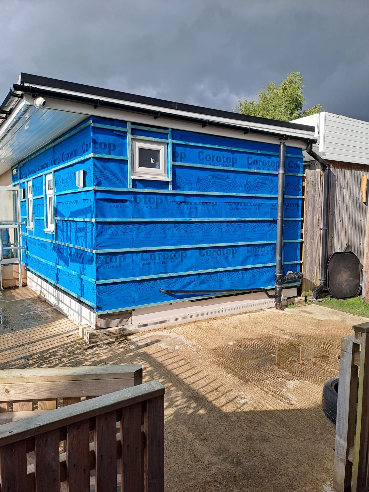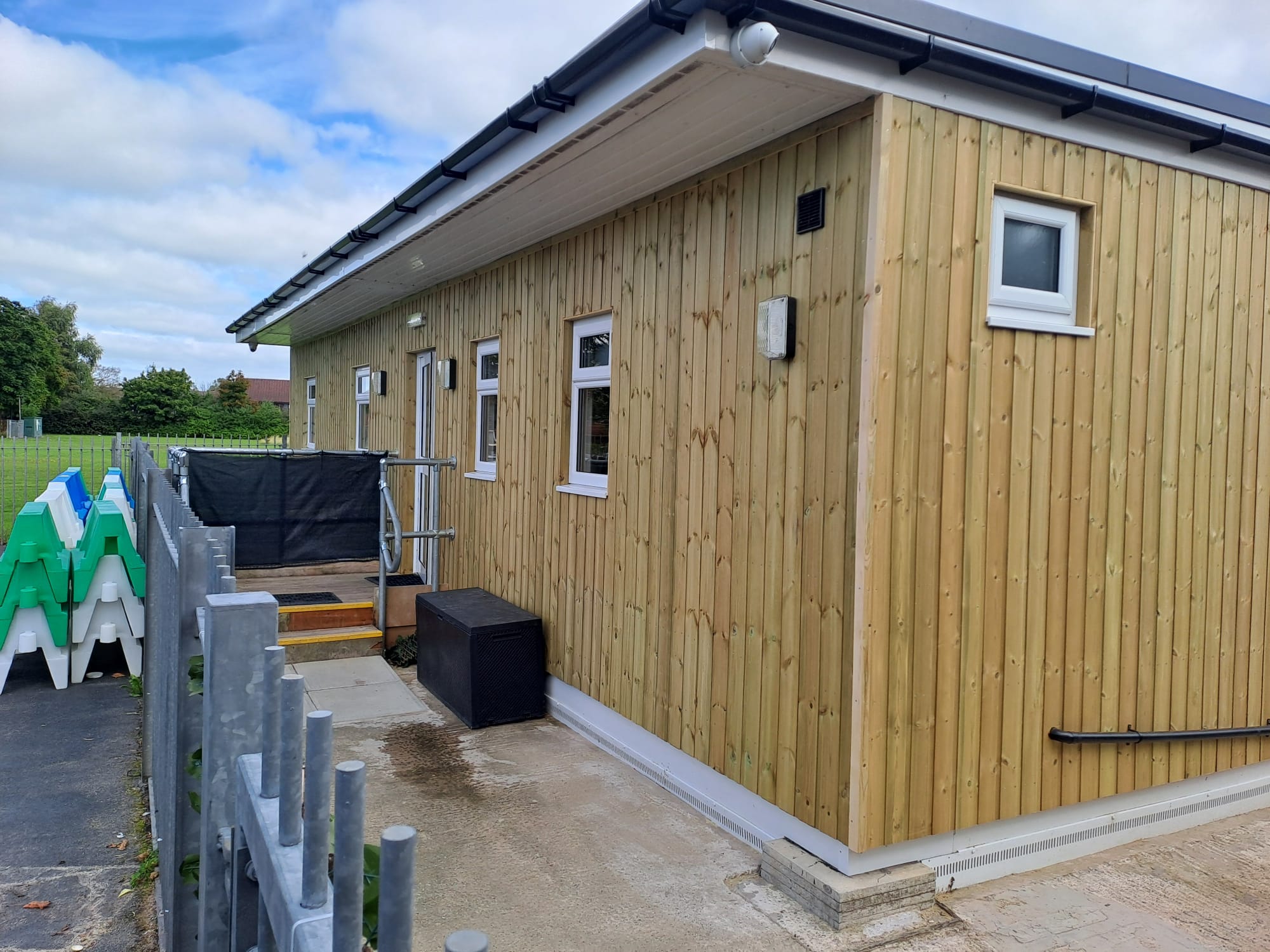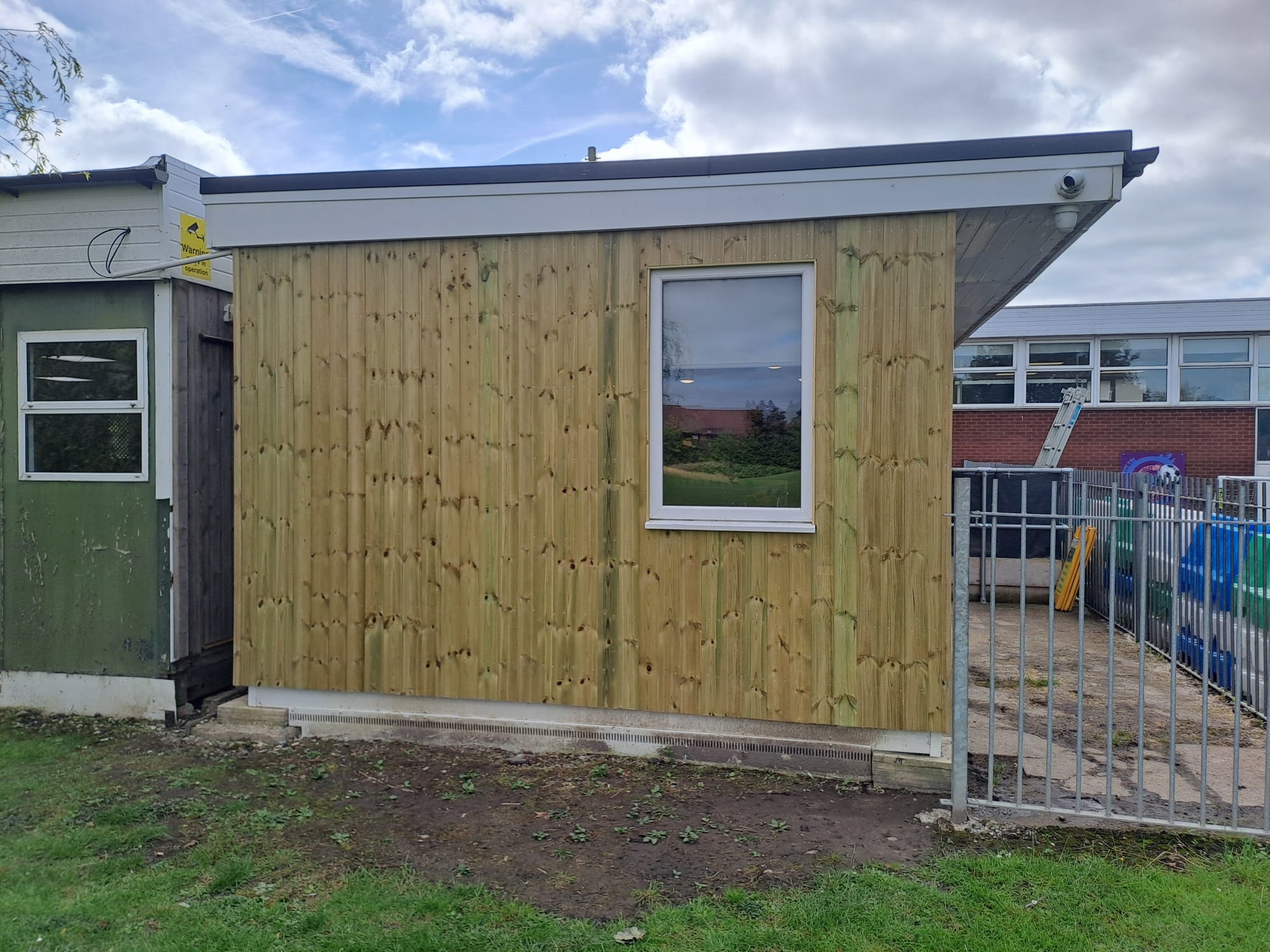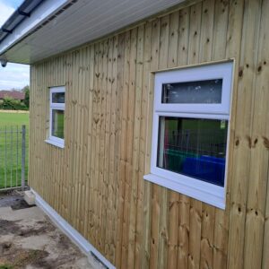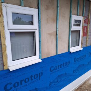 The Upvc Cladding & Render was Not in the approved planning plans when the Building was built. We had to remove all the cladding, extend all the services. This enabled the building to be counter Battened with a Breathable Membrane. To complete the External finish as per the approved Plans, the walls were clad with vertically boarded shiplap treated boards.