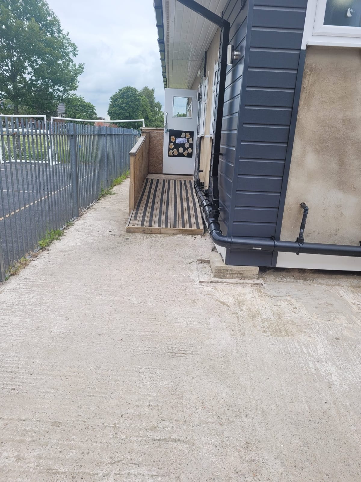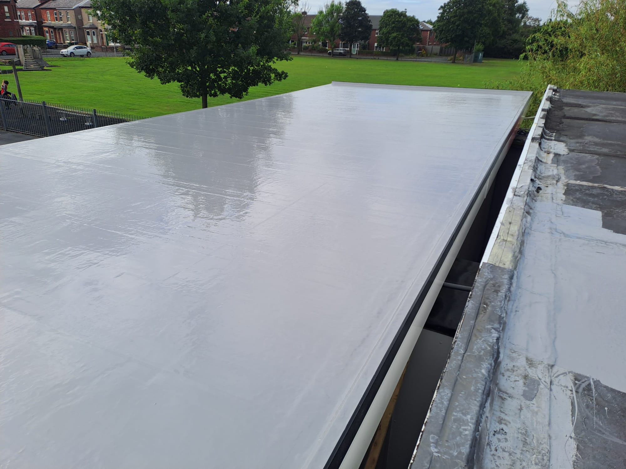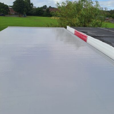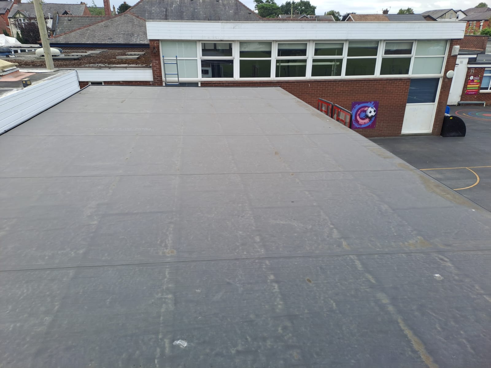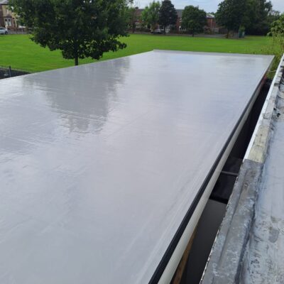 The Roof on this Nursery, was covered with EPDM Rubber that was not fully Bonded to the Timber Substrate & was identified by local Authority Building Control as an issue that needed addressing. The Roof coverings & Deck was replaced with New Plywood & Re covered with a Glass reinforced Matting, embedded on 2 Coats of solvent Free Polyurethane liquids.