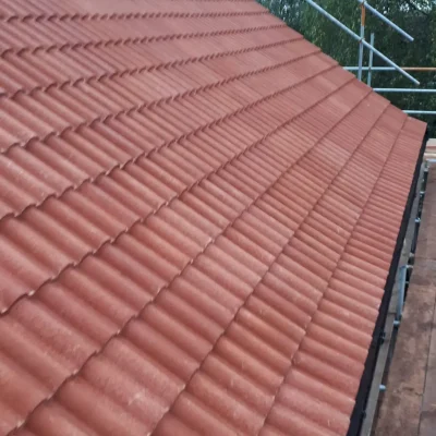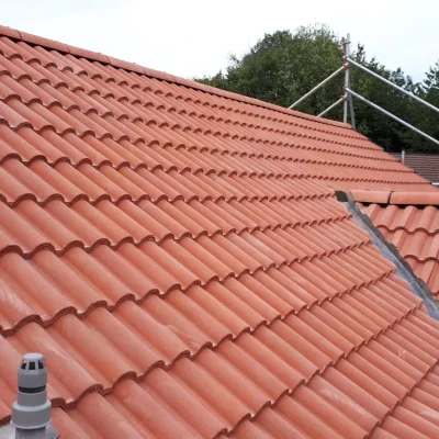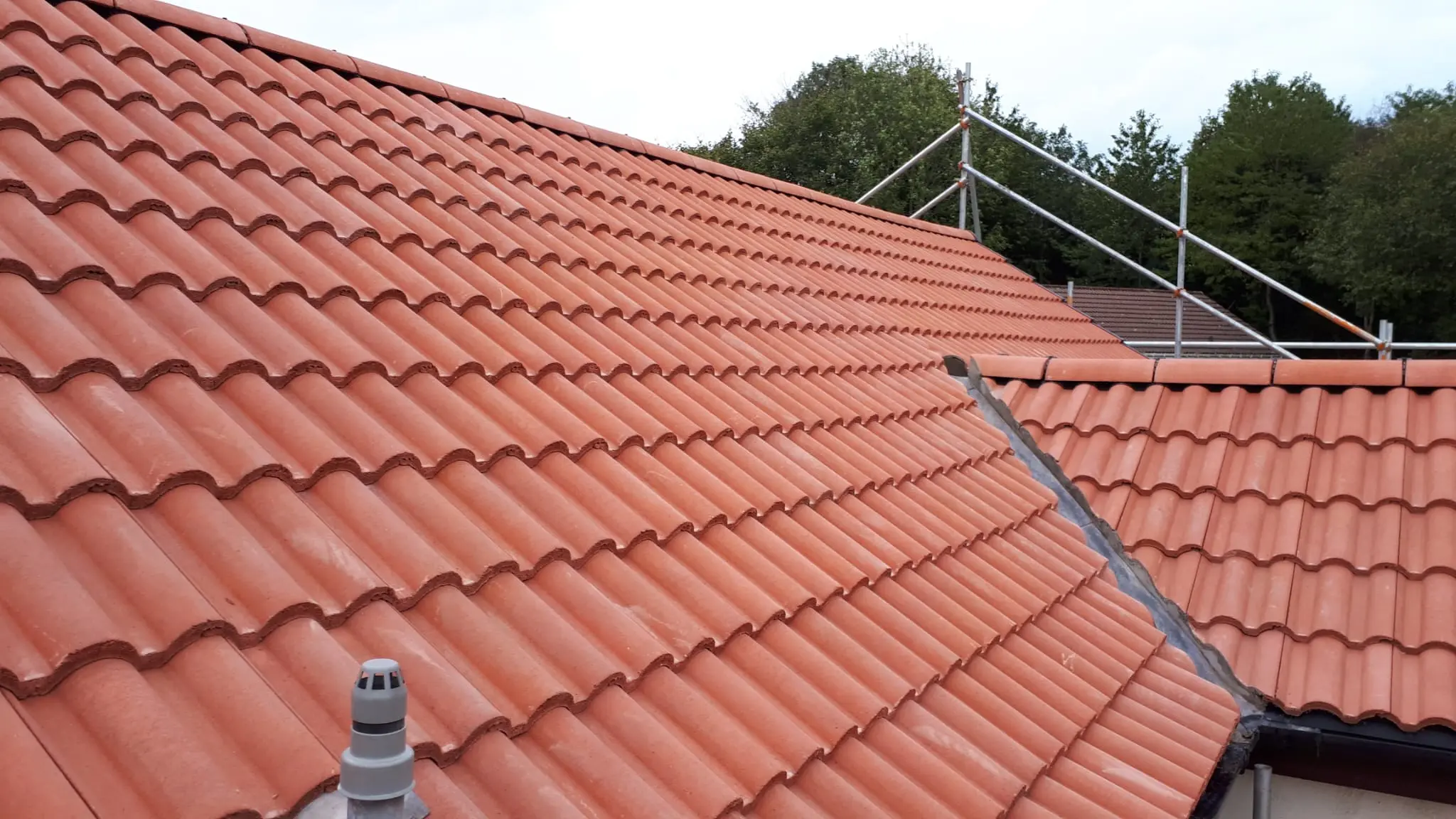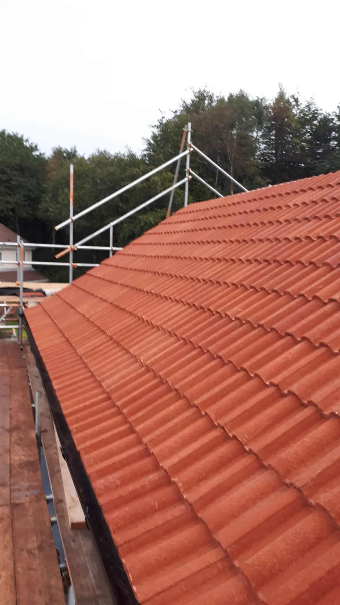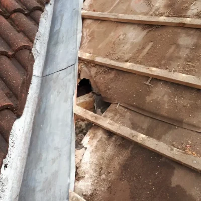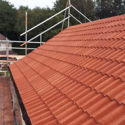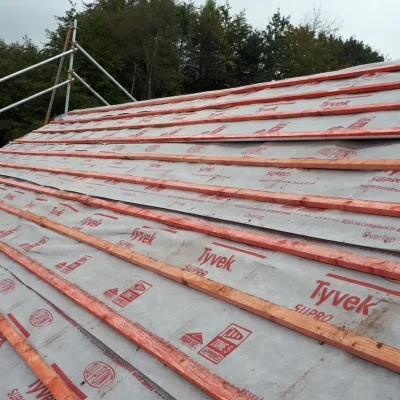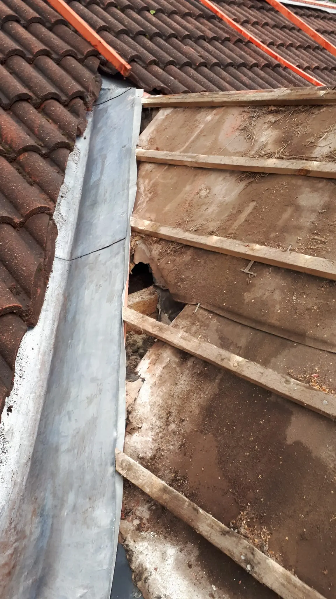 The existing roof coverings, including all Roof Tiles, Bitumen Felt, and Timber Battens, were fully removed. The roof was then replaced with new materials, including a breathable roofing felt, structural graded timber battens, a felt support eaves tray, a new lead valley, and a dry-fit ridge kit.